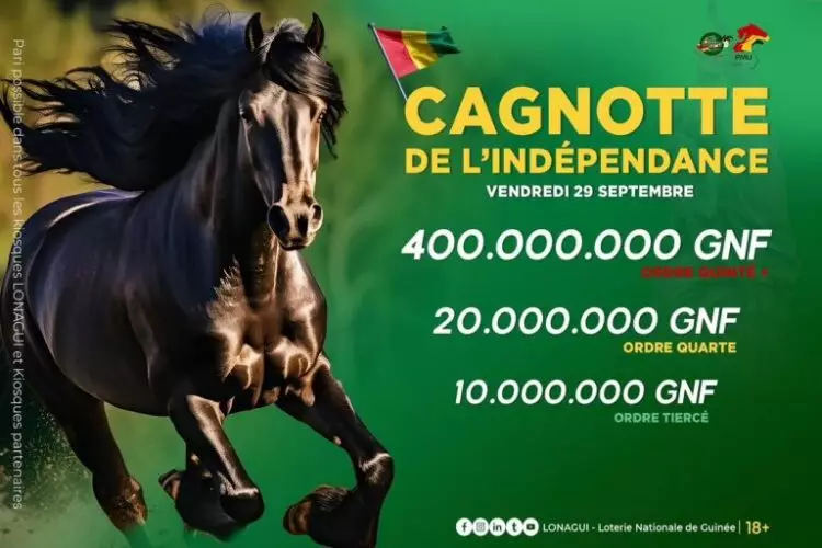 ACTUALITE ANNONCES An 65 de l’indépendance de la Guinée : la Lonagui offre une cagnotte spéciale à ses parieurs 28 septembre 202328 septembre 2023 Moussa SIBY Dans la perspective de la célébration de l’an 65 de l’indépendance de la République de Guinée, la Loterie Nationale de Guinée (LONAGUI), offre une cagnotte spéciale à ses parieurs ce vendredi 29 Septembre 2023.