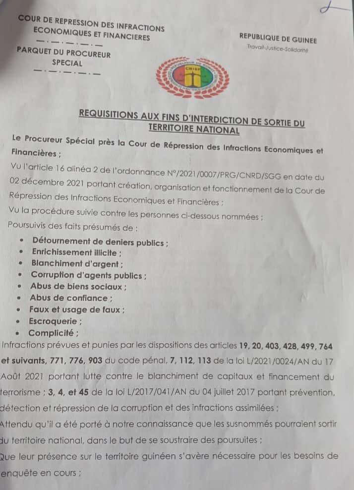 Selon le procureur spécial de la Cour de répression des infractions économiques et financières, cette mesure n’est pas fortuite. Il affirme avoir été informé de risques de fuite de certains mis en cause, susceptibles de quitter le territoire national afin de se soustraire à la justice.
