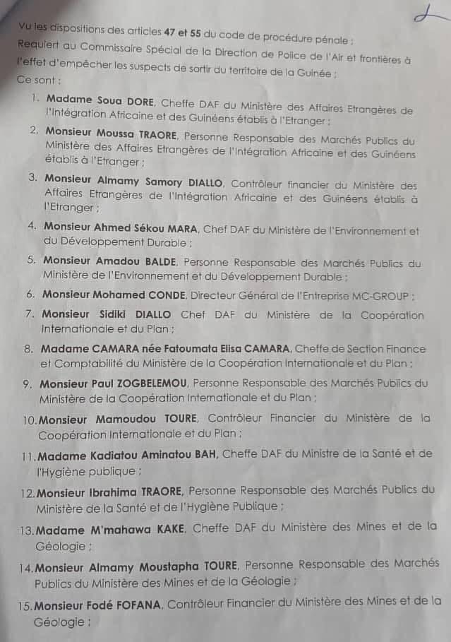 Sont notamment concernés des directeurs administratifs et financiers (DAF), des contrôleurs financiers, d’anciens ministres, d’anciens directeurs généraux, des personnes responsables des marchés publics dans les ministères ainsi que des gérants de sociétés.