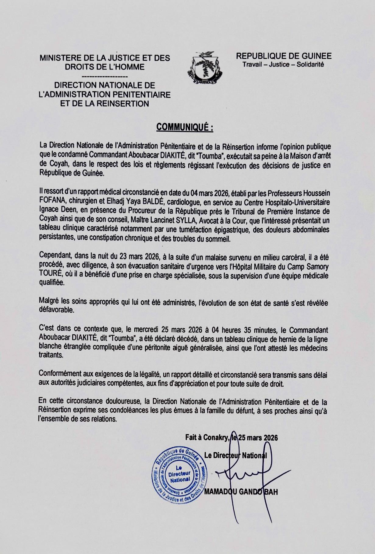 • Guinée : Aboubacar Sidiki Diakité dit « Toumba » est décédé
