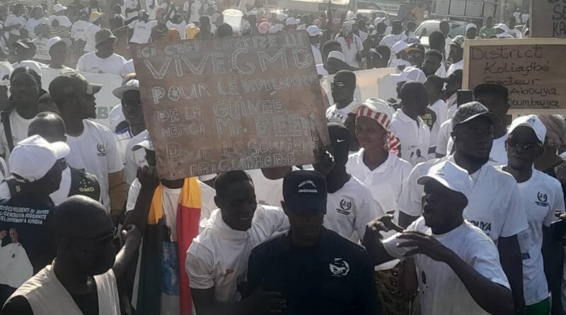 Après Friguiagbe, la délégation a rejoint le ministre du Budget, Facinet Sylla, à Comoya, où une grande manifestation de soutien au président candidat était organisée par Mme Fatoumata Camara, connue sous le nom de la « fermière 5G ».