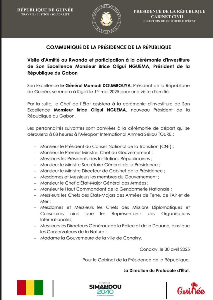 Le Général Mamadi Doumbouya annoncé au Gabon et à Kigali