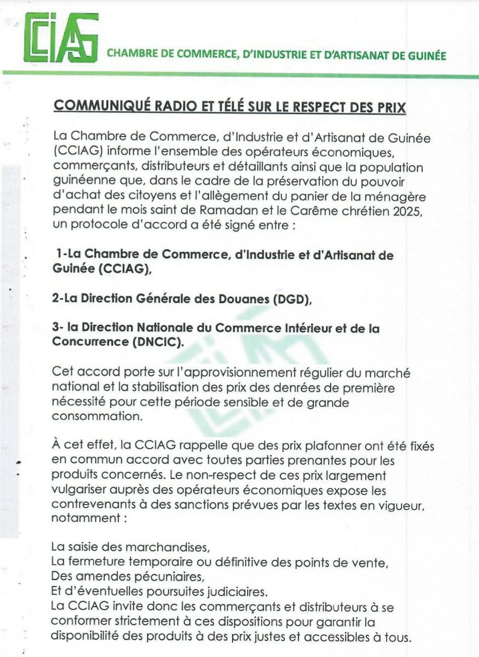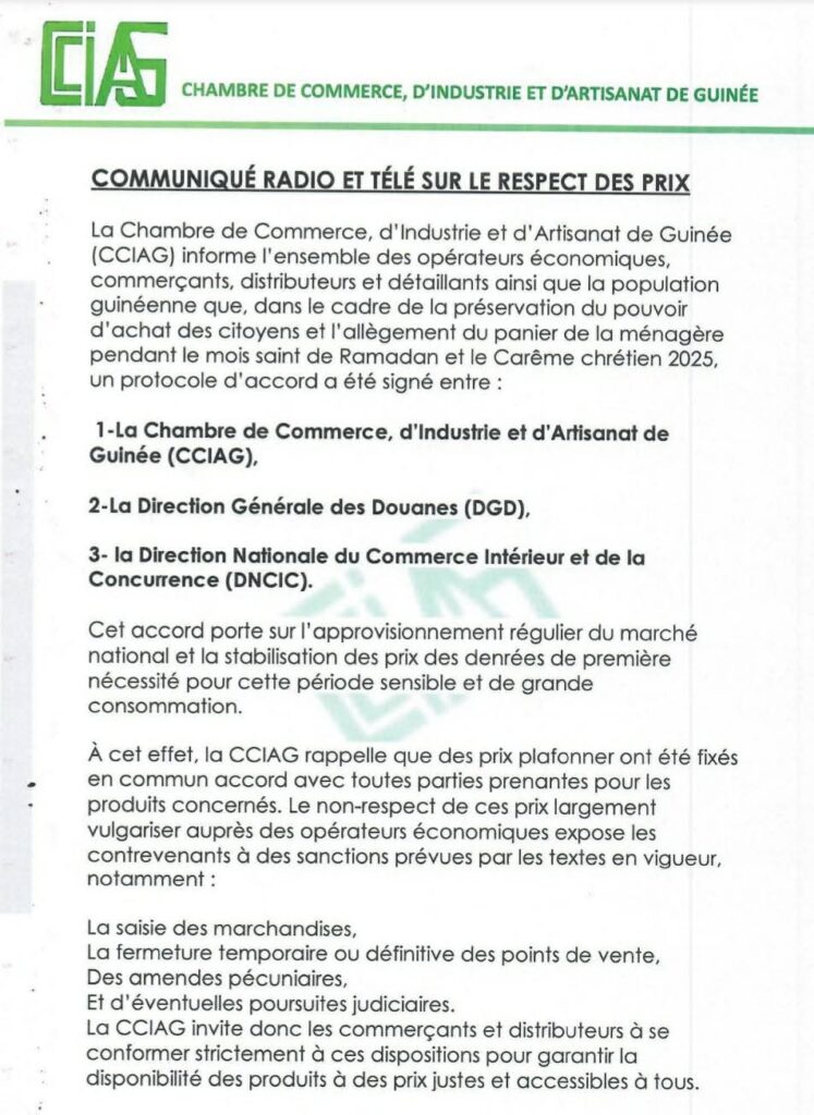 ACTUALITE ECONOMIE Société Plafonnement des prix : « les contrevenants s’exposent à des sanctions » 4 mars 20254 mars 2025 admin